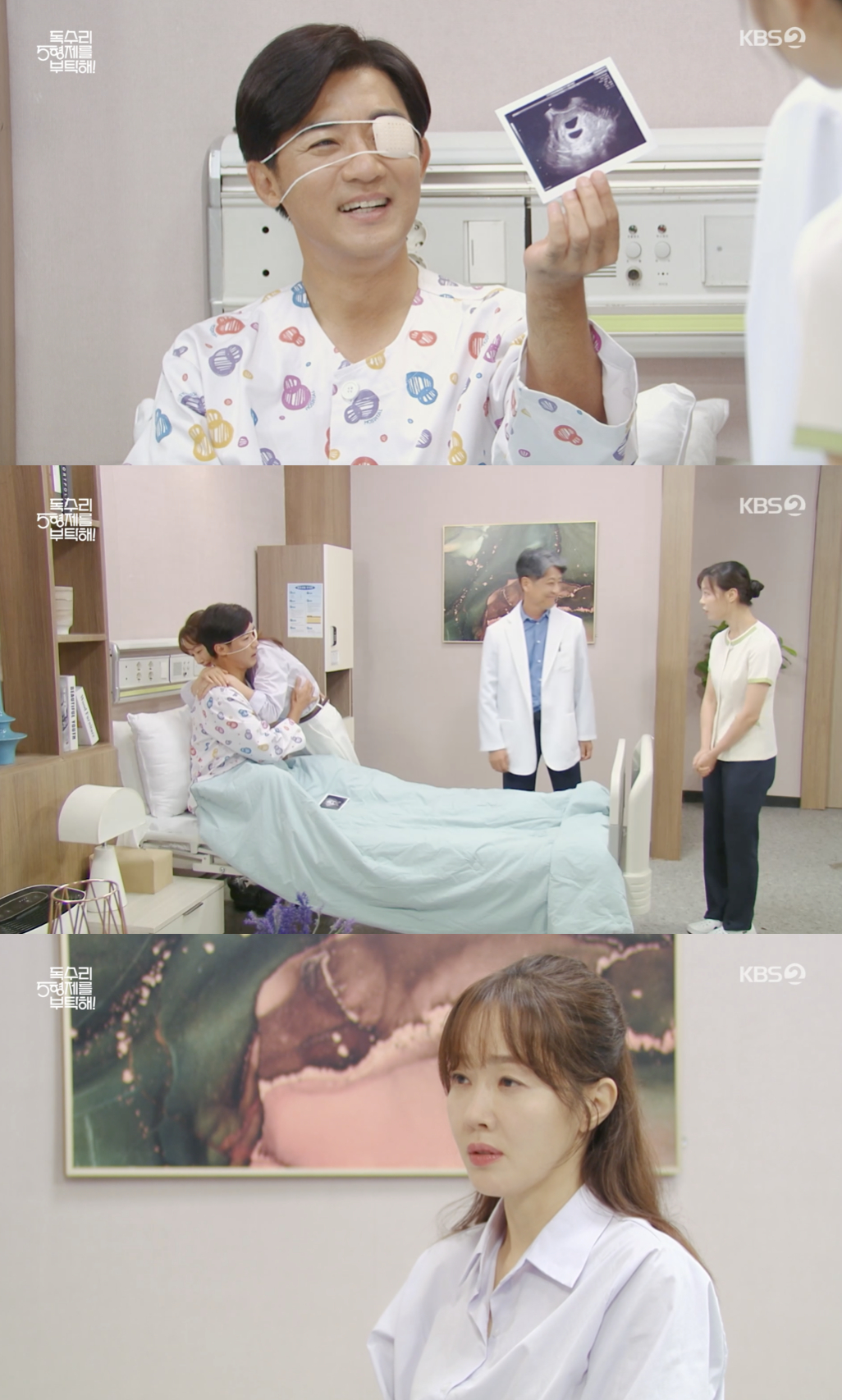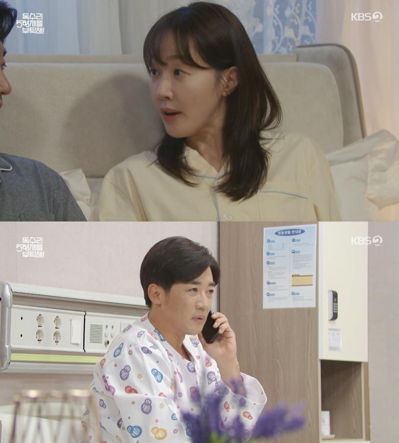 2일 방송된 KBS 2TV 드라마 '독수리 5형제를 부탁해!' 53회에서는 마광숙(엄지원 분)이 한동석(안재욱 분)과 함께 산부인과를 방문해 임신 소식을 듣는 장면이 그려졌다.