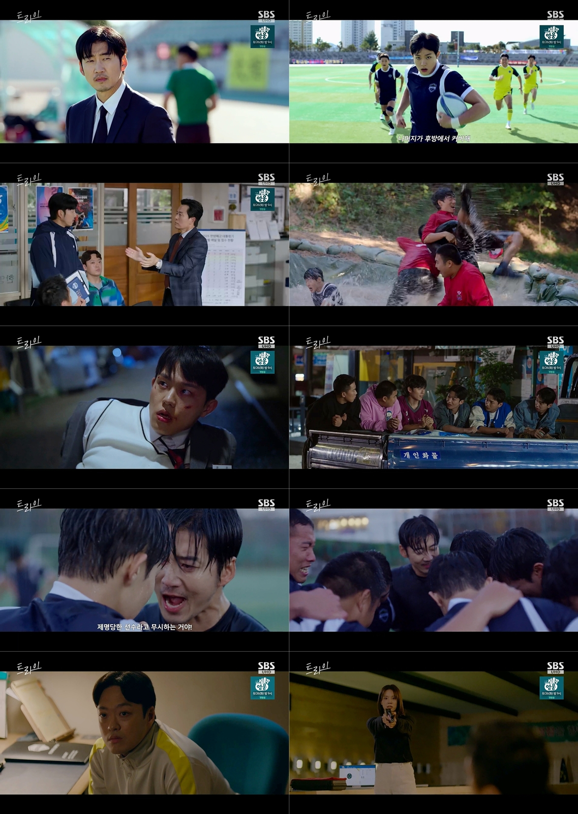 지난 16일 방송된 SBS 금토드라마 '트라이: 우리는 기적이 된다'(극본 임진아·연출 장영석, 이하 '트라이') 8화에서는 주가람(윤계상 분)과 한양체고 럭비부가 문웅(김단 분)의 태클 트라우마를 함께 극복하며 뭉클한 감동을 선사했다. 하지만 럭비부 폐부 추진 세력인 방흥남(정순원 분)에게 중증 근무력증을 들킬 위기에 처하며 궁금증을 증폭시켰다.