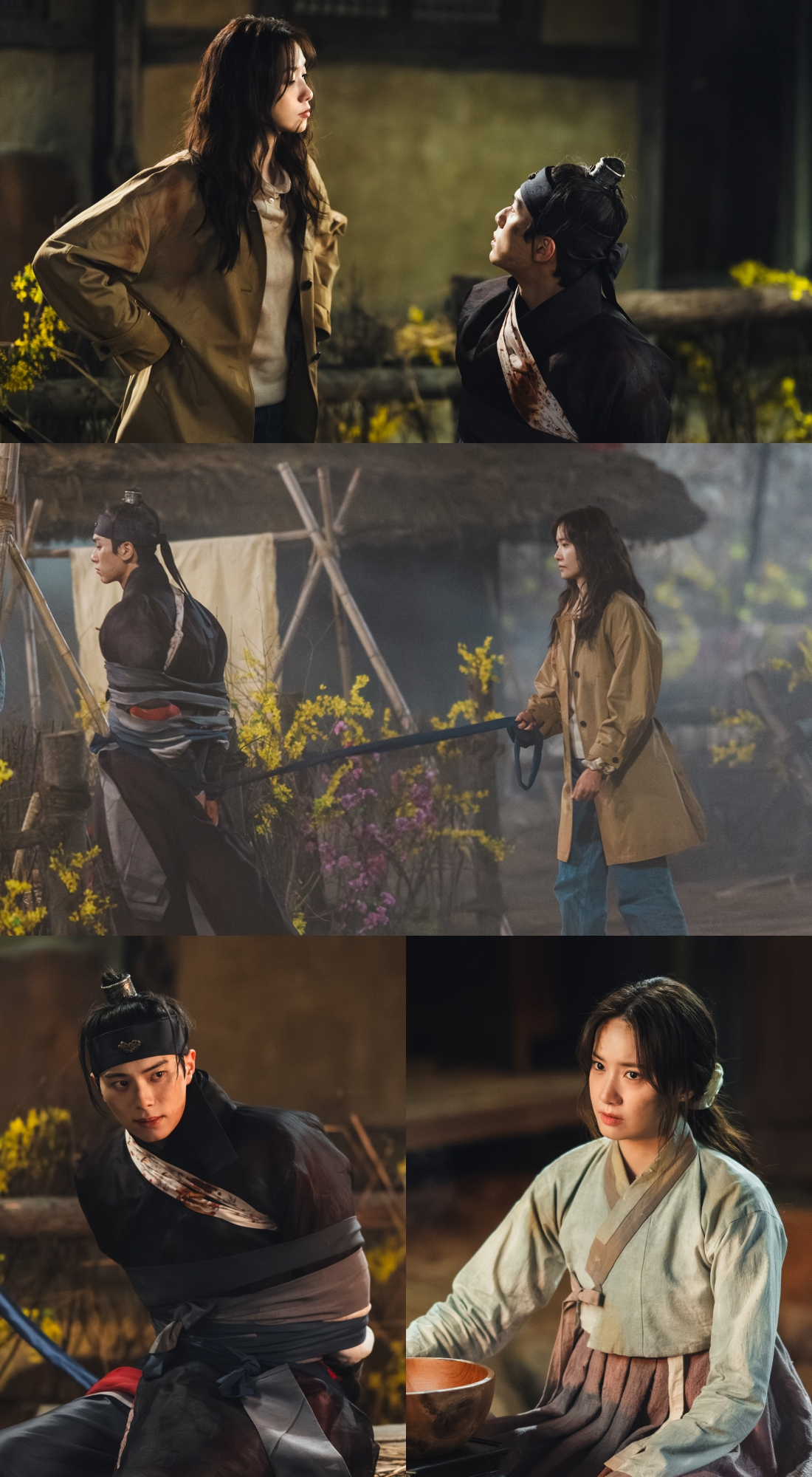 어두운 밤, 남루하기 그지없는 행색으로 마주하고 있는 두 사람에게서는 예상치 못한 기류가 읽혀 눈길을 끈다. 특히 연지영은 왕 앞에서도 두려울 것 없다는 듯 허리춤에 손을 얹고 고개를 치켜든 것은 물론 급기야 이헌을 죄인처럼 결박한 채 끌고 가는 파격적인 행보로 두 눈을 휘둥그레하게 만든다.