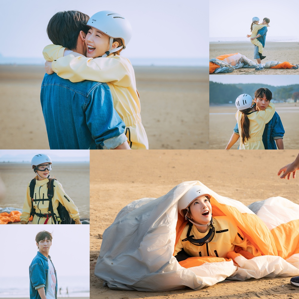 박민영과 주종혁이 윤이랑과 명구호로 변신한 '하늘 뚝떨 투샷'을 공개해 시선을 강탈한다. 극 중 바닷가에서 평화로운 시간을 보내던 명구호(주종혁) 앞에 패러글라이딩을 타고 뚝 떨어진 윤이랑(박민영)이 명구호 품에 폭 안기게 된 상황. 윤이랑은 마냥 해맑은 웃음으로 명구호를 끌어안아 반가움을 표하고, 졸지에 윤이랑을 안게 된 명구호는 당황스러움과 난감함이 교차하는 얼굴로 굳어 극과 극 감정을 내비친다.