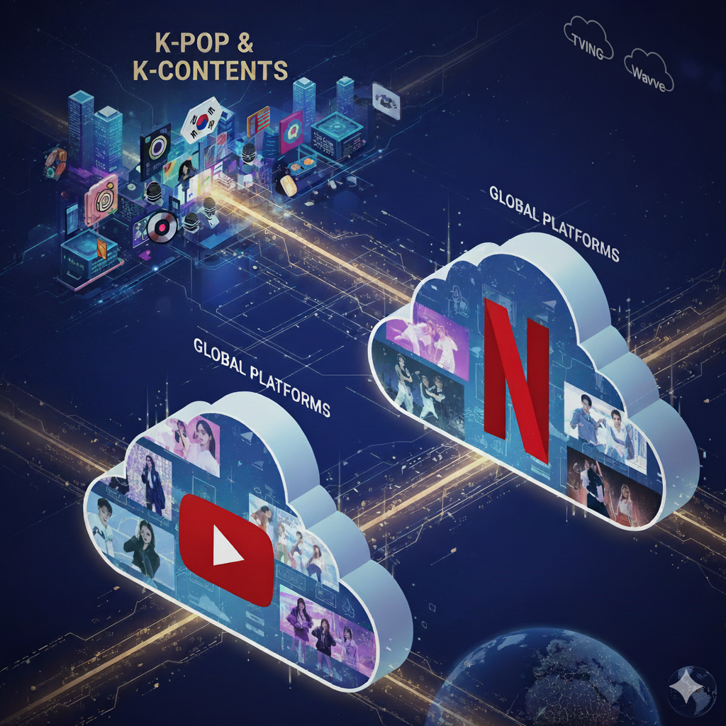 현재 한국 콘텐츠 시장은 글로벌 플랫폼 의존 중심이다. 유튜브, 트위터 등 SNS를 통한 확산, 넷플릭스 중심의 K드라마 소비 등은 한류의 급성장을 이끌었지만, 한국 자체 플랫폼의 경쟁력 부재를 드러내기도 했다. 콘텐츠의 힘은 세계적으로 입증됐으나, 이를 뒷받침할 'K플랫폼 파워'는 여전히 취약하다.