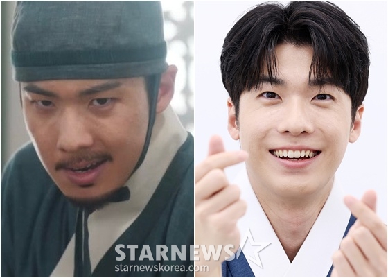 한복을 차려입고 등장한 홍진기는 앳된 얼굴로 눈길을 끌었다. 어두운 메이크업, 짙은 수염 분장을 지운 그는 작품 속 맹숙수의 얼굴과 정반대의 매력을 뽐냈다.