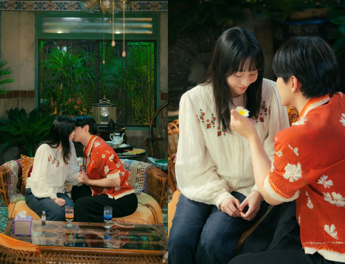 하지만 공개된 스틸컷에서는 말과 달리 진심이 새어 나오는 분위기가 담겨 있다. 미선의 바로 뒤에서 살짝 몸을 기울인 채 다정하게 서 있는 태풍, 그런 그의 앞에서 환하게 웃는 미선의 얼굴엔 설렘과 머뭇거림이 동시에 묻어 있다. 퇴근길 골목길에서 마주 선 두 사람의 시선이 맞닿는 순간엔 서로를 향한 마음이 고스란히 전해진다. 거리 두기와 끌림이 교차하는 미묘한 온도가 두 사람 사이에 번지며 보는 이들의 심장을 간질인다.