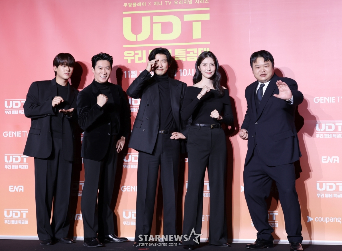 연예방송오늘 공개되는 'UDT: 우리동네 특공대'[★포토]발행 : 2025.11.17 ・ 14:34조회수 :김휘선 기자배우 이정하, 진선규, 윤계상, 김지현, 고규필이 17일 서울 광진구 풀만 앰버서더 서울이스트폴에서 진행된 쿠팡플레이x지니TV 시리즈 'UDT: 우리 동네 특공대' 제작발표회에 참석해 포즈를 취하고 있다. /2025.11.17<저작권자 © 스타뉴스, 무단전재 및 재배포 금지>브리핑추천 기사김휘선 기자기자홈좋아요연예-방송의 인기 급상승 뉴스연예-방송의 최신 뉴스AD