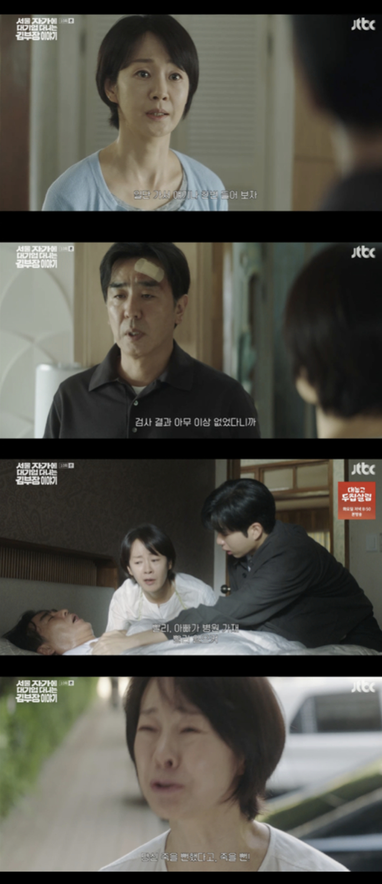 23일 방송된 JTBC 토일드라마 '서울 자가에 대기업 다니는 김 부장 이야기' 10회에서는 대리운전 중 사고를 당한 김낙수(류승룡 분)에게 아내 박하진(명세빈 분)이 정신과 진료를 권유했다.