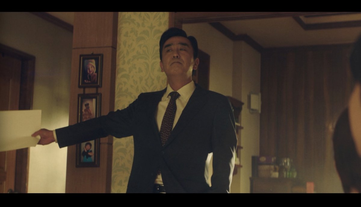 그는 집안 곳곳을 가리키며 "현관부터 화장실, 그리고 수겸이 방까지가 사원부터 대리까지 10년 동안 모은 월급이다", "주방과 침실, 다용도실까지가 과장 시절 5년 월급이고, 차장 달고 5년 동안 탈탈 털어서 겨우 산 게 바로 이 거실하고 베란다"라며 그 공간을 자신의 인생과 시간으로 설명했다. 이어 "마지못해 샀지만, 두 사람 명심해. 이 집은 내 51년 인생의 트로피야"라고 말했다.