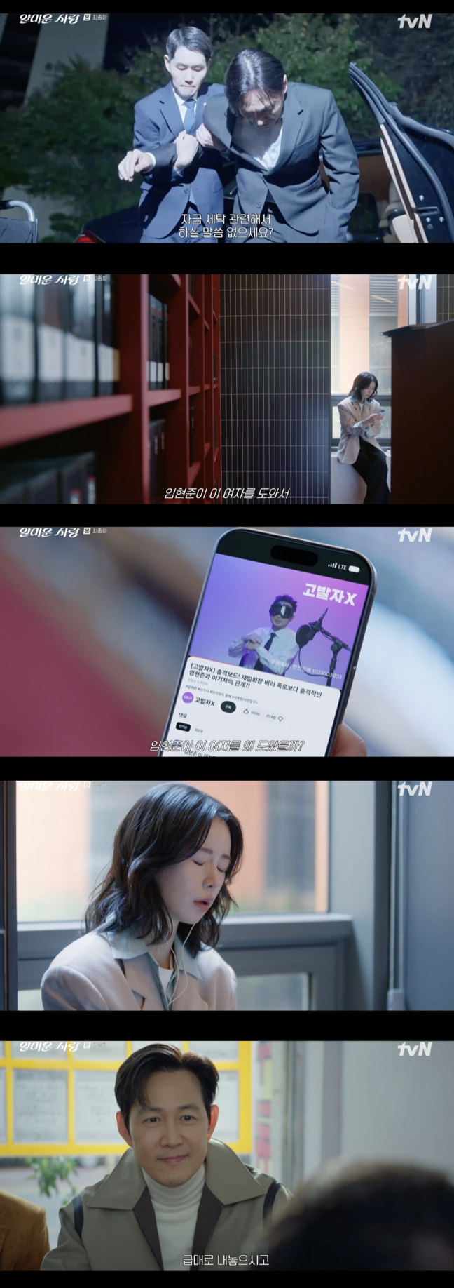 30일 방송된 tvN 월화드라마 '얄미운사랑' 최종회에서는 임현준(이정재 분)이 위정신(임지연 분)과 함께 은호그룹 이대호 회장의 비자금 실체를 폭로하는 모습이 그려졌다.