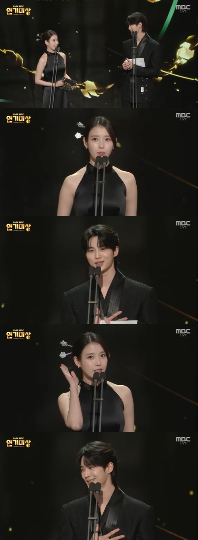 가수 겸 배우 아이유와 배우 변우석이 '2025 MBC 연기대상'에 시상자로 출격했다.