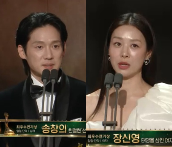 이날 최우수 연기상 일일·단막극 부문은 '친절한 선주씨' 송창의, '태양을 삼킨 여자' 장신영에게 돌아갔다.