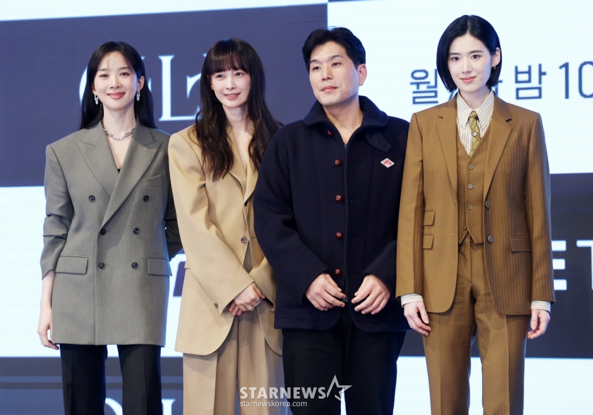26일 오후 서울 구로구 디큐브시티 더세인트에서 ENA 새 월화드라마 '아너: 그녀들의 법정'(극본 박가연/이하 '아너') 제작발표회가 진행된 가운데 박건호 PD와 배우 이나영, 정은채, 이청아가 참석했다.
