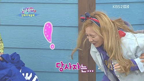 소녀시대 멤버 효연이 장독을 열자 벌칙을 수행하는 사람은 효연의 얼굴에 소금을 뿌렸다. 붐도 똑같은 벌칙을 당했다. 소금이 눈에 들어가거나 할 경우 자칫 위험한 상황이 올 수 있는 상황.