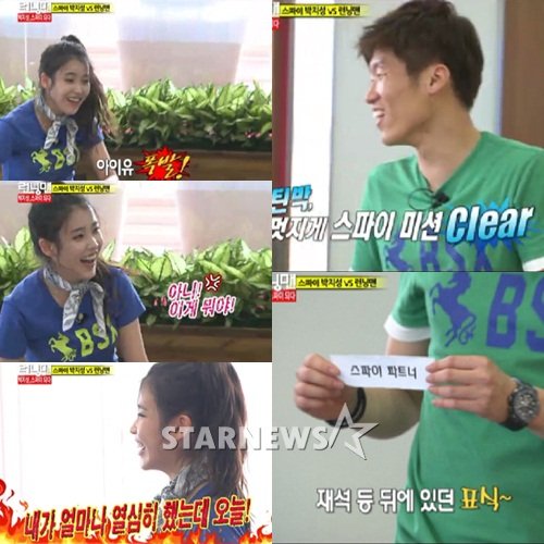 아이유는 3일 방송된 SBS '일요일이 좋다-런닝맨'(이하 '런닝맨')에서 자신을 제거한 박지성의 존재를 알고 "헐, 대박"이라며 분노했다.
