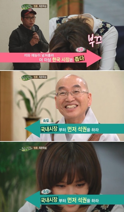 이에 법륜스님은 "우선 국내시장부터 먼저 석권을 하라"라고 냉철한 조언을 해 웃음을 자아냈다.