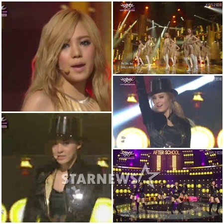 애프터스쿨은 22일 오후 방송된 KBS 2TV 가요프로그램 '뮤직뱅크'에서 타이틀곡 '플래시백'과 '립오프'로 지상파 컴백 무대를 선보였다.