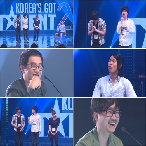 이들은 '코갓탤2'에 참가한 현재 상황을 개그로 승화했다. 심사위원이 합격자를 발표하는 순간을 패러디했다. 이준형 조재형은 긴장감을 위해 숨을 고르는 모습을 "저희랑 밀당 하지 마세요"와 "빨리 말해야 그 쪽도 빨리 집에 갈 거 아닙니까"라고 했다.