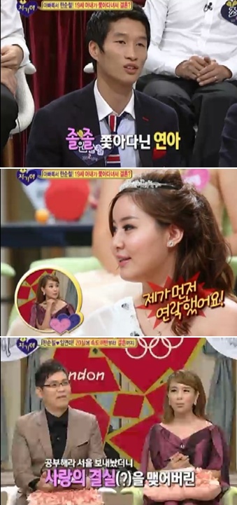 23일 방송된 SBS '스타부부쇼 자기야'에는 런던 올림픽의 영웅 한순철과 탁구선수 유승민이 출연, 미모의 아내를 공개했다.