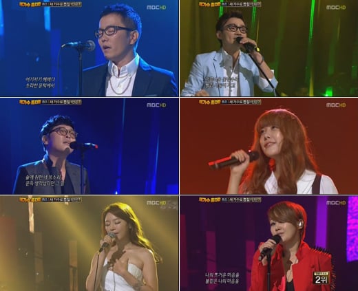 이번 새 가수 선발전 각 조에서 '가장 감동을 준 가수'로 뽑힌 2팀 '나가수2'의 새 가수로 전격 투입돼 '슈퍼디셈버 2012 가왕전'으로 가는 본 경연에 합류하게 된다.