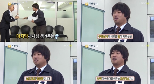 이날 '무한상사'에서는 신입사원 채용 면접이 이뤄졌다. 무한상사에서 3년 넘게 있던 인턴사원인 길이 면접을 봤다.