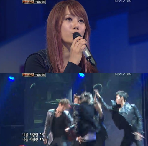 이날 방송은 첫 번째 경연으로 진행됐으며 가수 공현우, 멜로디 등이 소속된 멜로디즈는 가수 태양의 '죄인'을 열창했다.