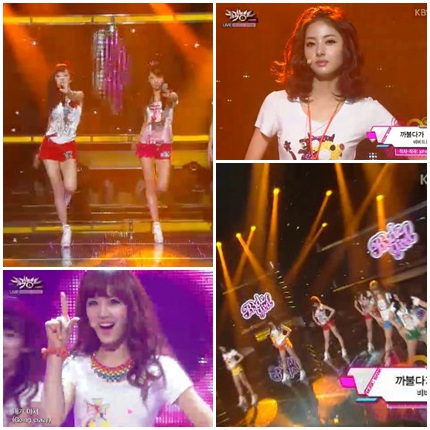 비비드걸은 12일 생방송된 KBS 2TV '뮤직뱅크'에서 데뷔앨범 타이틀 곡 '까불다가' 무대를 가졌다.