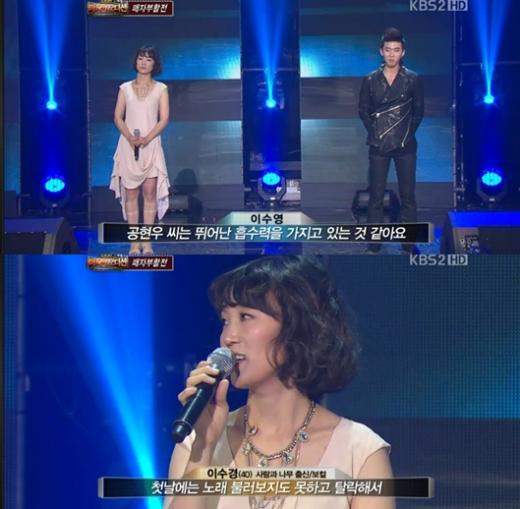 12일 오후 방송된 KBS 2TV '내 생애 마지막 오디션'에서 지난 주 탈락했던 공현우는 첫 방송에서 탈락한 이수경과 1대1 패자부활전을 갖게 됐다.