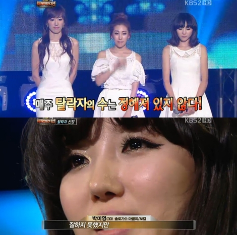 9일 오후 방송된 KBS 2TV '내 생애 마지막 오디션'에서 비너스(임선영 박미영 유소라)는 438점을 얻어 최하위 팀으로 선정됐다.