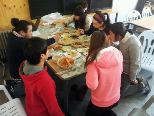 '노애'의 허안나는 8일 오후 자신의 트위터에 "노애팀 아침부터 회의. 마님과 노비들 겸상 중"이라는 글과 함께 연습 중 식사 모습을 공개했다.