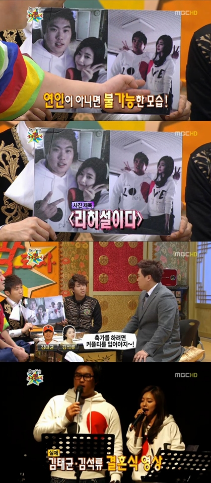 이어 그는 홍수아와의 커플티 착용에 대해 야구선수 김태균과 아나운서 김석류 부부의 결혼식 축가 리허설을 위해 입었다고 설명했다. 류현진은 "축가를 준비하는데 두 분께서 갑자기 커플티도 착용하라고 하셨다. 그래서 입은 것 뿐. 당시 아이유와 임슬옹의 '잔소리'를 함께 불렀다"고 덧붙였다.