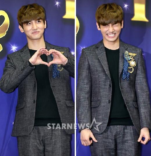 그룹 동방신기의 최강창민이 16일 오전 서울 여의도 KBS 신관에서 열린 예능 프로그램 '달빛프린스' 제작발표회에서 포즈를 취한 뒤 민망한 듯 웃고 있다.