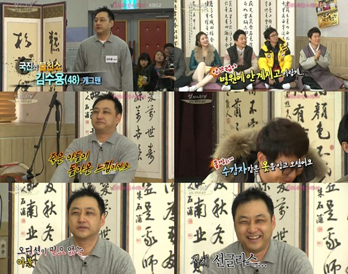 개그맨 김수용이 '남자의 자격'에서 김국진의 불쌍한 친구로 등장했다.