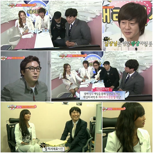 11일 오후 방송된 MBC 파일럿 예능프로그램 '나는 당신의 대리천사'(이하 '대리천사')에서는 MC 윤도현, 탁재훈, 은지원, 구하라와 게스트로 출연한 씨스타의 효리, 씨엔블루 정용화가 함께 시청자의 말 못한 사연을 들었다.