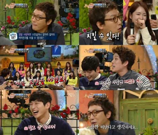 이날 방송에서 서울여대 학생들이 출연해 출연진들에게 남자들에 대해 궁금한 질문을 하는 시간을 가졌다. 한 여학생은 MC 탁재훈에게 "정말 사랑하면 스킨십이나 잠자리 없이도 여자 친구를 사귈 수 있냐"고 물었다.