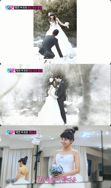 26일 케이블 채널 MBC에브리원 '우리 결혼했어요-세계판'( 이하 '우결 세계판') 제작진은 최근 진행 된 택연과 오영결 커플의 웨딩화보 촬영 현장사진을 공개했다.