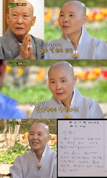 정목스님음 13일 오후 방송된 SBS '힐링캠프, 기쁘지 아니한가' 출연해 법정스님에게 받은 꾸지람의 내용이 담긴 편지를 공개해 눈길을 끌었다.