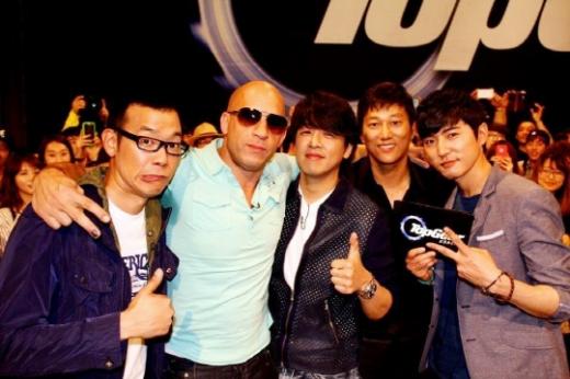 15일 XTM에 따르면 '분노의 질주:더 맥시멈' 홍보 차 최근 방한했던 빈 디젤은 자신의 팬페이지 트위터에 '탑기어코리아4'의 세 MC와 다정하게 촬영한 사진을 올렸다.