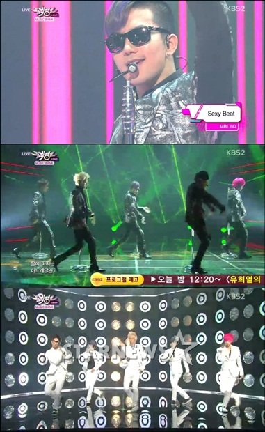 엠블랙은 7일 오후 방송된 KBS 2TV 가요프로그램 '뮤직뱅크'를 통해 미니 5집 '섹시 비트'의 타이틀곡 '스모키걸'과 '섹시 비트' 무대를 선보였다.