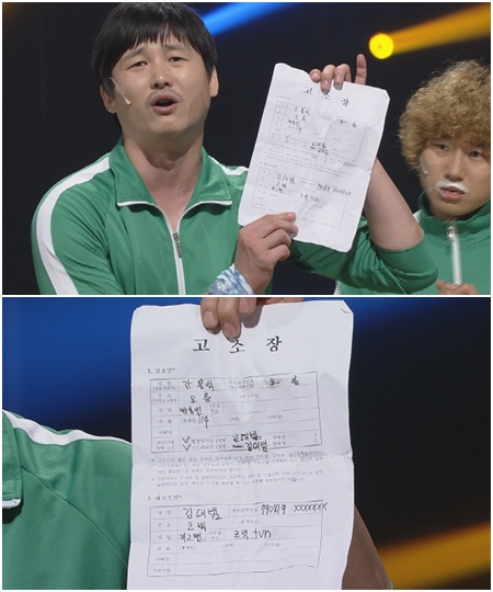 이어 김대범은 "강용석씨 나 좀 고소해달라고 얘길 했는데 나를 무시하고 있어! 요즘 잘나가서 귀찮아서 그래? 그래서 내가 강용석씨 대신 고소장 써 왔어"라며 자신의 이름을 직접 적은 고소장을 들고 나왔다.