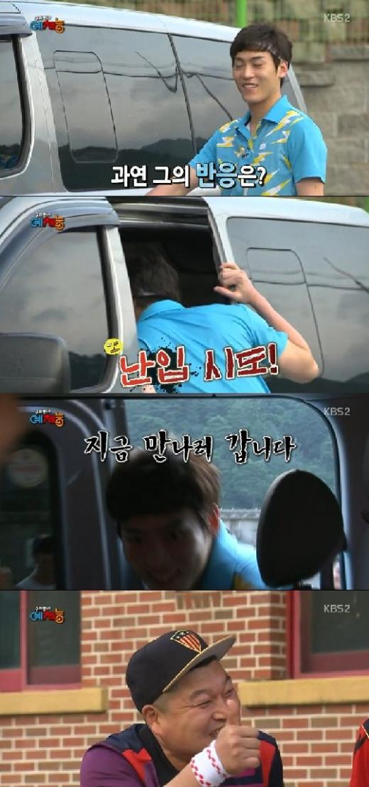 제작진은 두 선수를 소개하기 위해 "차 안에 선물이 들어있다"며 예체능 팀에게 차문을 열어볼 것을 권했다. 앞서 이수근과 이만기가 먼저 차 문을 열어보고 흥분을 감추지 못한 채 돌아온 것을 보고 세 번째로 존박이 차로 향했다.