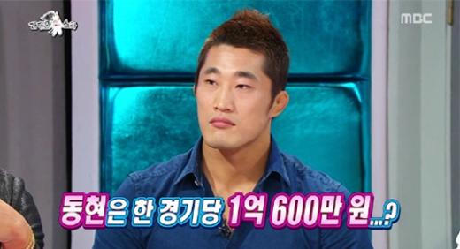 먼저 MC 김구라가 "김동현 선수가 한 경기에 1억 600만 원을 받는다. 대단하다"며 운을 떼자, 김동현은 "이겼을 때 그렇게 받고 지면 반만 받는다. 이기고 대기실에 가면 바로 수표를 가져온다"고 말했다.