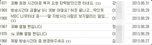 하지만 이런 호평글에 꼭 덧붙여지는 한마디가 있다. 그것은 바로 방송 시간대에 관한 불만글. '코미디에 빠지다'의 홈페이지 게시판에는 "월요일 새벽에 본방 사수하기 너무 힘들다", "보다가 잠 들었다", "보고 싶은데 월요일 출근이 무서워서 못 보겠다"는 등의 시청자 게시글이 올라와 있다.