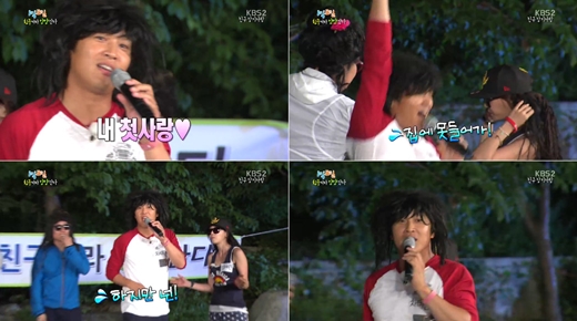 이날 차태현은 잠자리 복불복이 장기자랑 대결로 꾸며지자 KBS 2TV '개그콘서트'의 인기코너 '용감한 녀석들'을 패러디 했다.