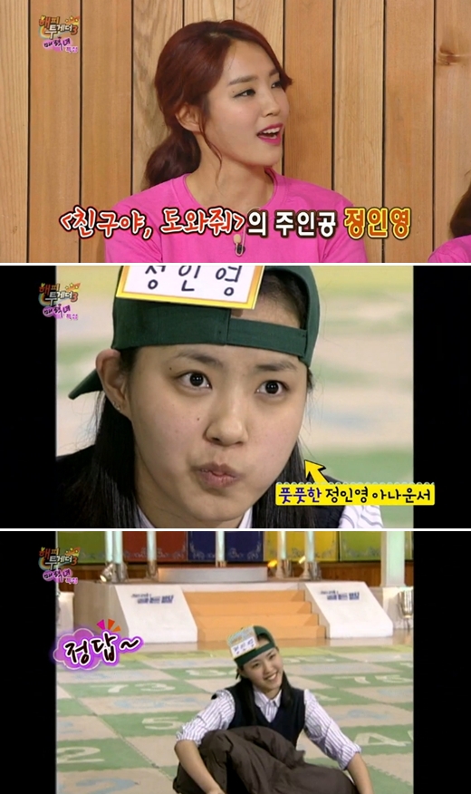 이때 화면에는 당시 '도전 골든벨'에 정인영이 출연한 장면이 공개됐다. 고등학생 정인영의 뽀얀 피부와 풋풋한 모습이 눈길을 끌었다.