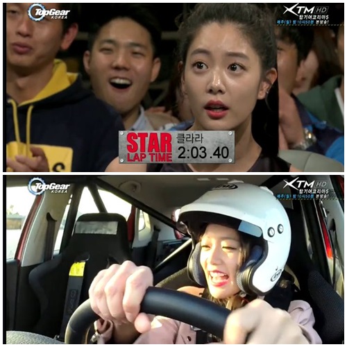 이날의 하이라이트는 폭스바겐 골프를 타고 이뤄지는 스타랩타임. 빨간색 골프에 올라탄 클라라는 무리 없이 안정적으로 주행했고, 2분 3초 40을 기록했다.
