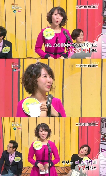 손요는 29일 오후 방송된 KBS 2TV '가족의 품격 풀하우스'(이하 '풀하우스')의 '공감의 신' 코너에 출연해 '내 인생의 진품명품'이란 주제로 패밀리들에게 자신의 경험을 털어놨다.