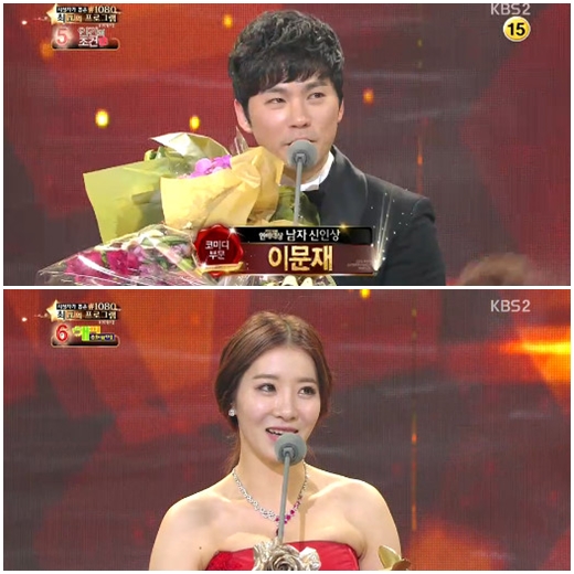 이문재와 안소미는 21일 오후 서울 여의도 KBS 신관 공개홀에서 진행된 이날 시상식에서 코미디부문 남녀신인상을 수상하는 영광을 차지했다.