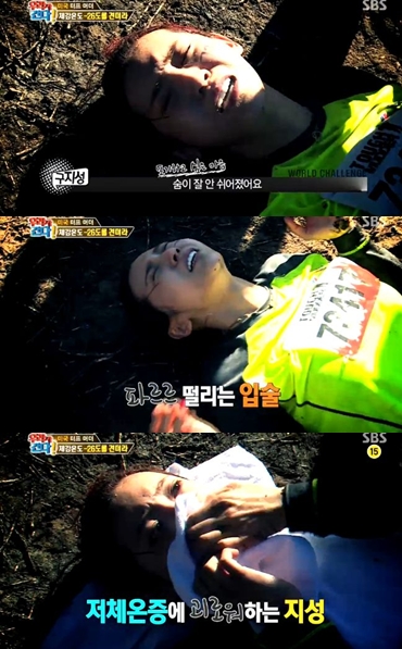 '우리가 간다'의 구지성이 저체온증에 걸려 실신했다.
