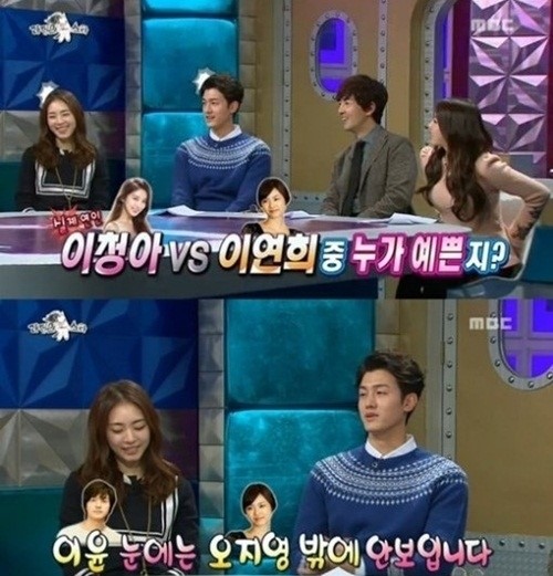 이날 방송에서 '라디오스타'의 MC들은 이기우에게 "연인인 이청아와 이연희 중에서 누가 더 예쁘냐"고 물었다.