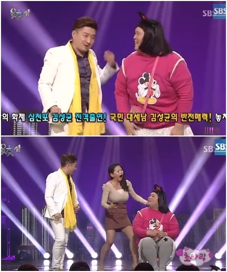지난 10일 오후 방송된 SBS 코미디 프로그램 '웃찾사'(웃음을 찾는 사람들)에서는 현재 KBS 2TV '슈퍼맨이 돌아왔다'에 출연하며 인기를 얻고 있는 추성훈과 추사랑 부녀 패러디 코너 '초사랑'이 공개됐다.