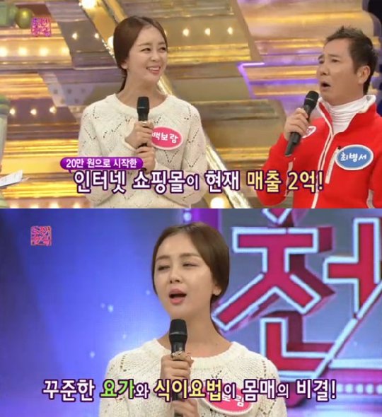 이날 MC 이휘재는 "살도 많이 빠진 것 같다"라고 운을 떼며 "방송 활동 이외에도 개인 사업이 잘 되고 있다고 들었다"고 질문했고 이에 백보람은 "20만 원으로 시작했던 쇼핑몰이 지금은 2억 원 정도 벌고 있다"고 말해 출연진의 부러움을 샀다.