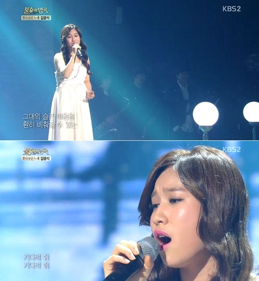 박수진은 18일 오후 방송된 KBS 2TV '불후의 명곡-전설의 노래하다'에서 고 김광석의 '기다려줘'로 무대에 올랐다.